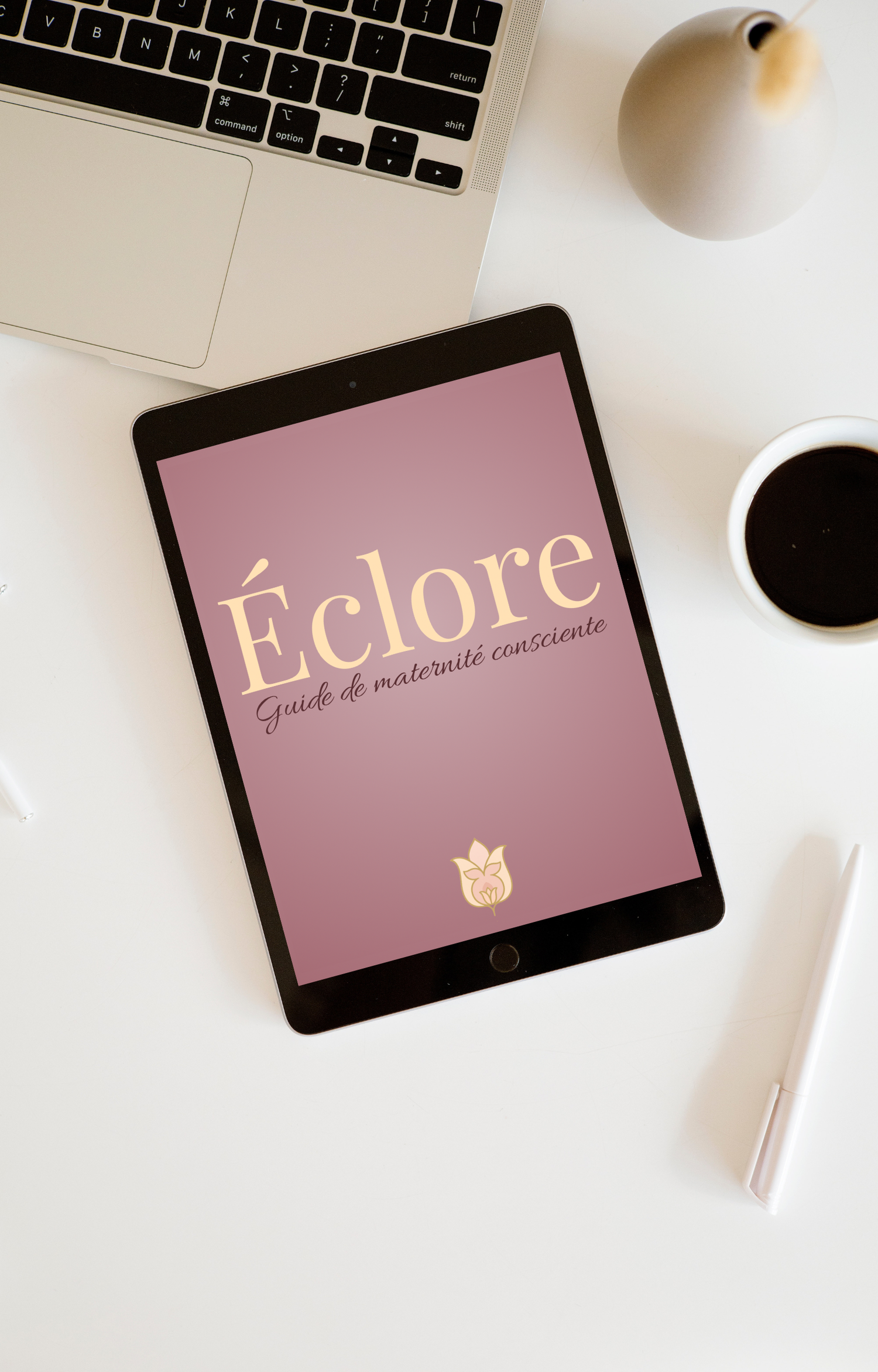 Avec Éclore, tu as tout au même endroit : les différents suivis expliqués simplement, le choix du lieu de naissance décodé, un planning trimestre par trimestre, comment créer ton projet de naissance et un chapitre entier sur le post-partum pour ne pas rentrer à la maison sans accompagnement.